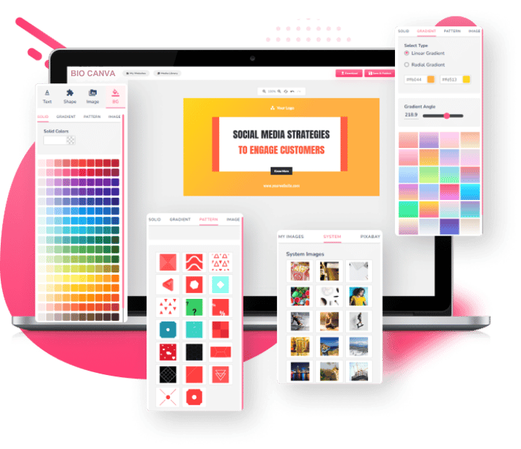 Bio Canva Editor Provides Customizable Background Options Such As Solid Colors, Gradients, Patterns, Or Images. You Can Also Use Your Own Colors, Gradients, And Images To Create A Stunning Design. Customize Your Background To Fit Your Needs With Pixaguru.