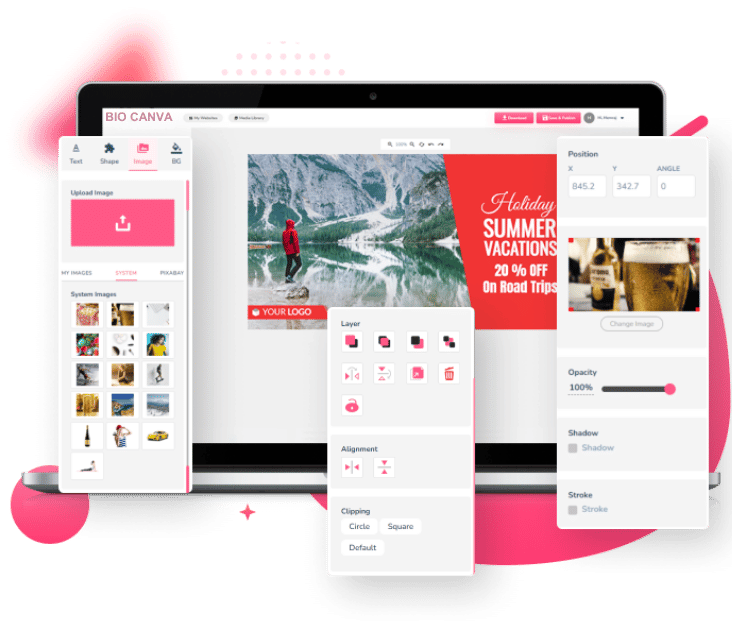 Bio Canva Image Option Tool Lets You Upload Your Own Images And Access A Massive Library, Including Pixabay Integration For More Options. You Can Crop, Resize, And Add Special Effects Like Opacity, Shadow, And Stroke. Create Stunning Visuals That Leave Your Audience In Awe With Endless Possibilities Using Bio Canva Image Options.